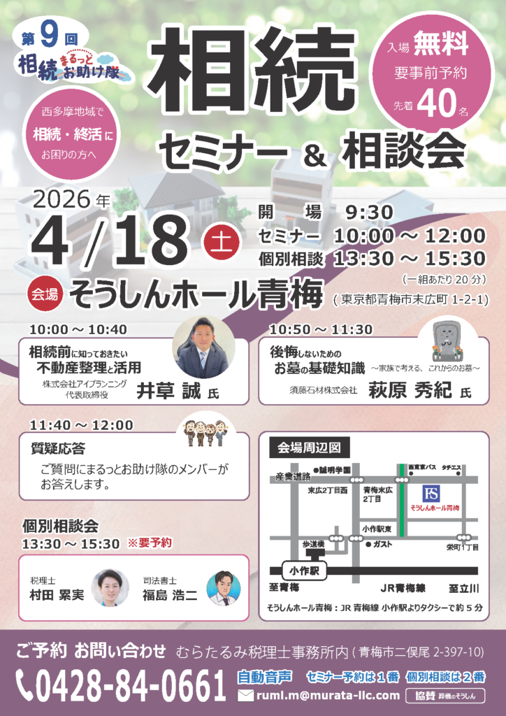 会場:そうしんホール青梅 青梅市末広町1-2-1 ※立体駐車場有 約90台